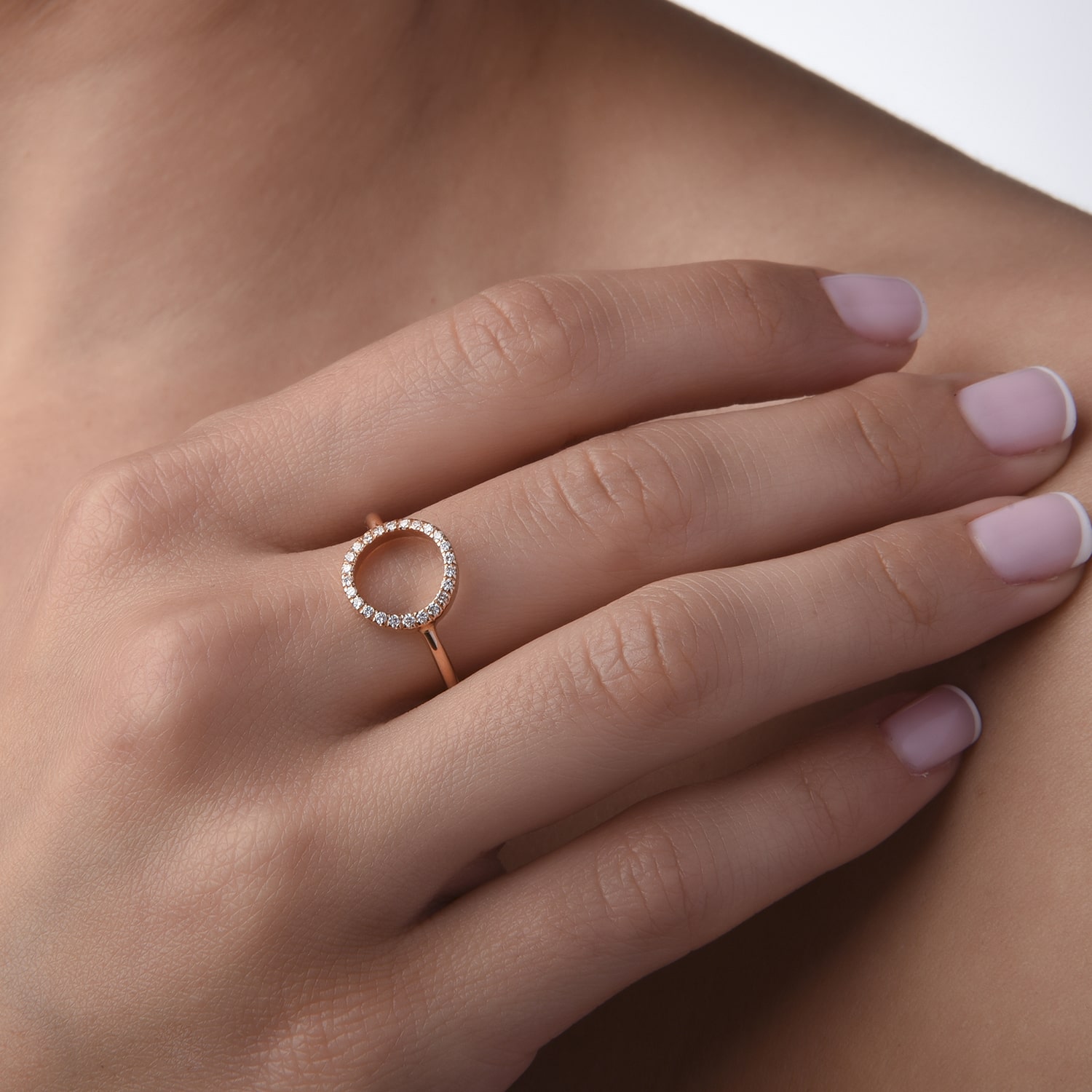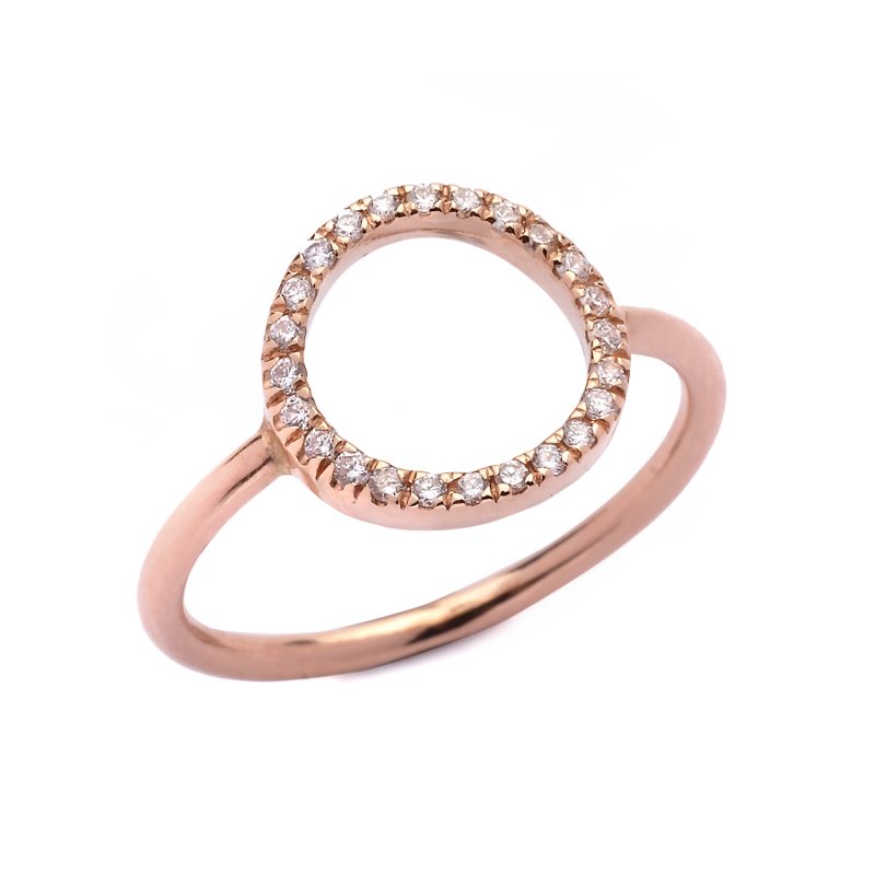 Anillo de oro 18kt con círculo de diamantes. Los brillantes son de 1,15mm (0,12ct en total) y la calidad de los diamantes G/VS.