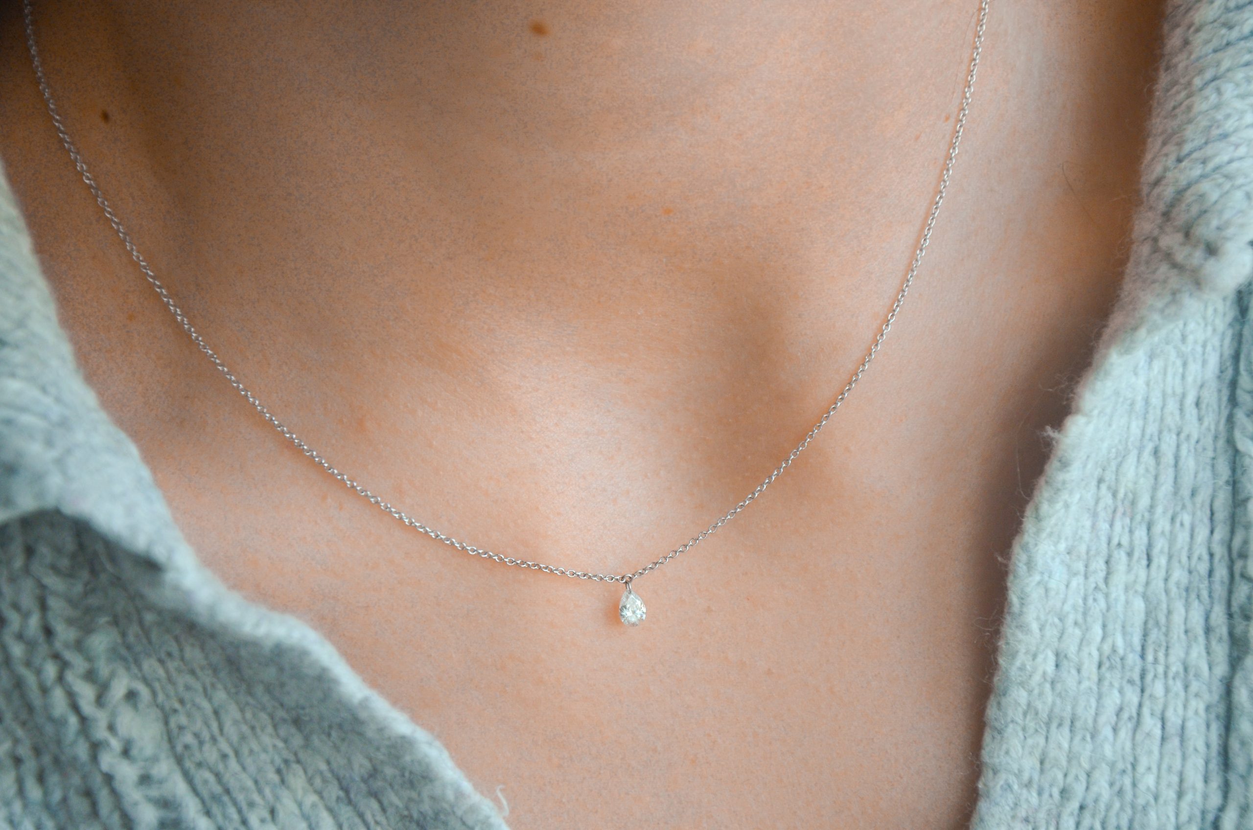 Cadena de oro blanco de 18 quilates con diamante perforado en talla lágrima.