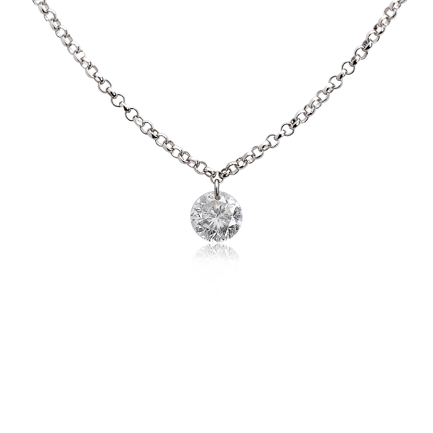 Cadena de oro blanco de 18kt con diamante talla brillante en movimiento.
