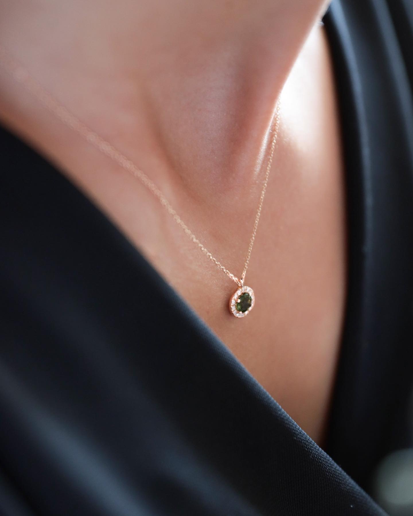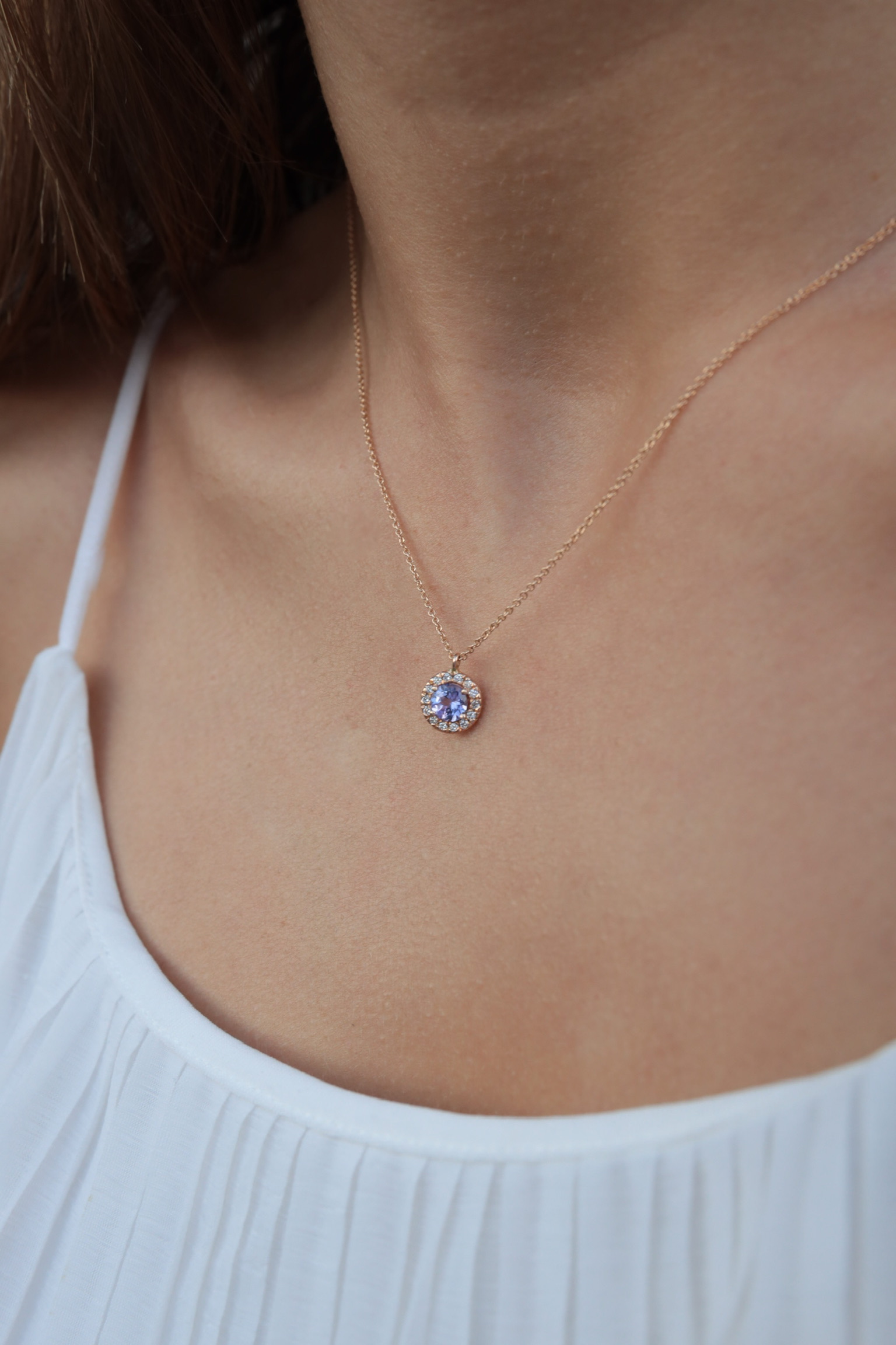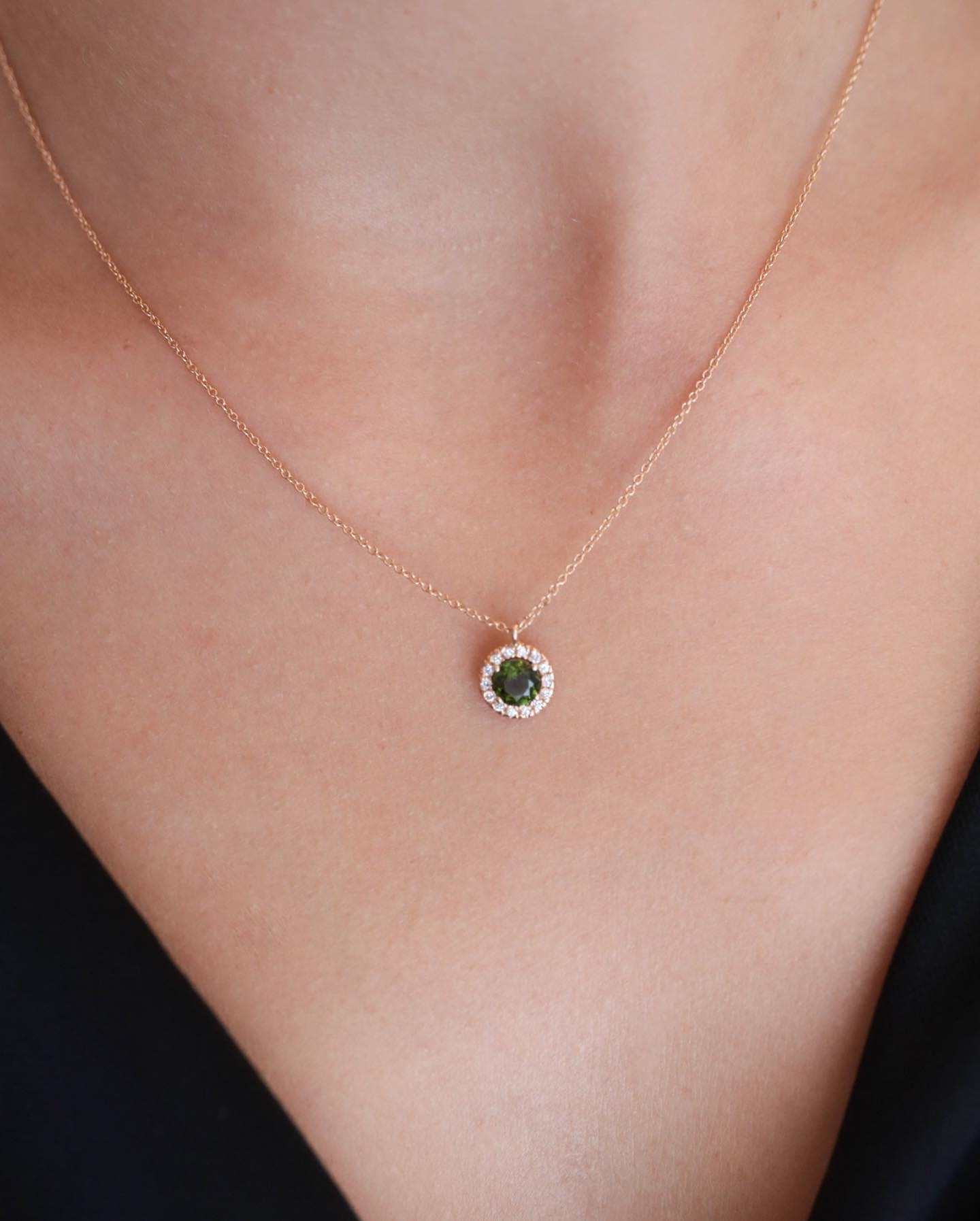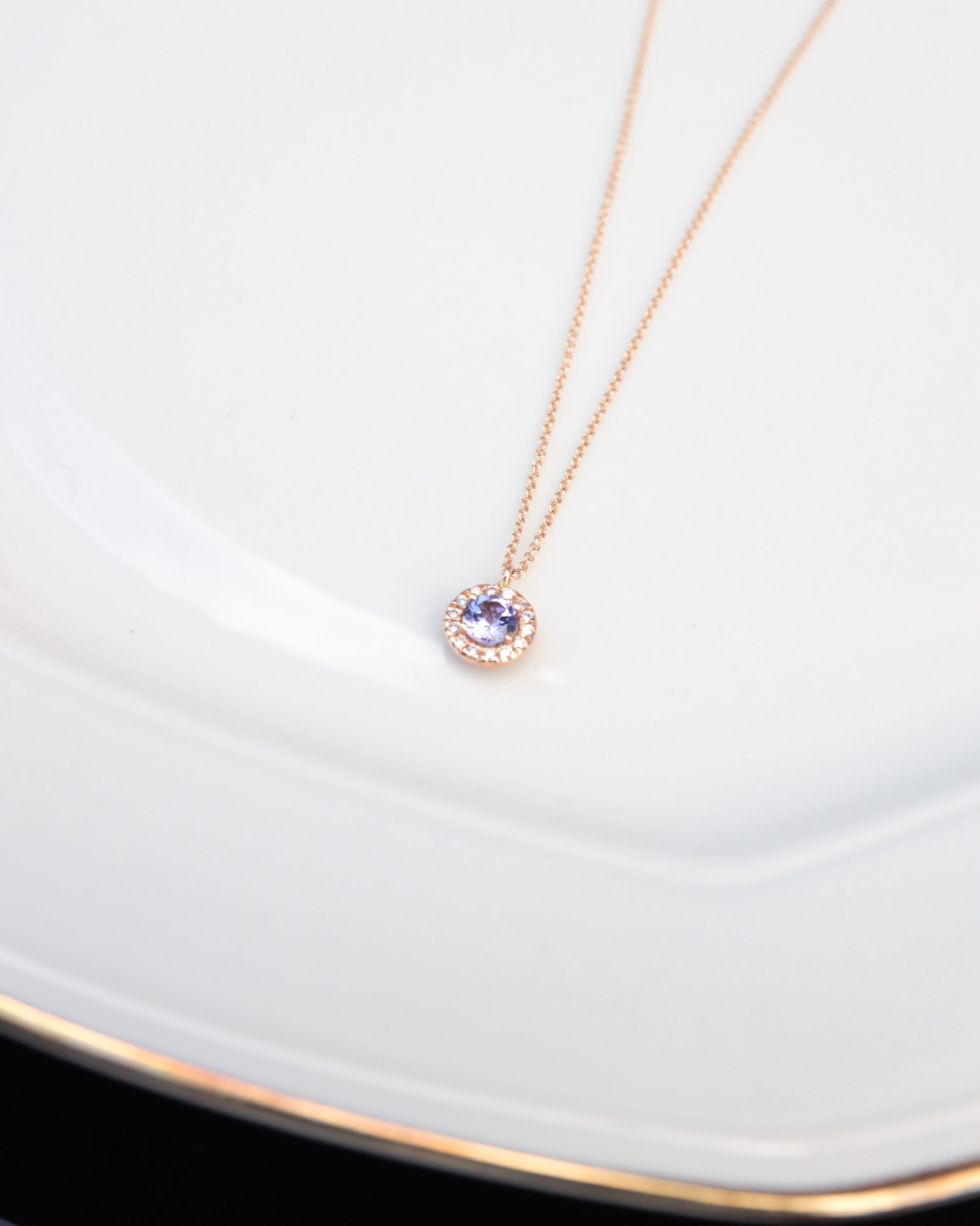 Collar con cadena de oro de 18kt y orla de diamantes blancos con una gema central de 5 mm.