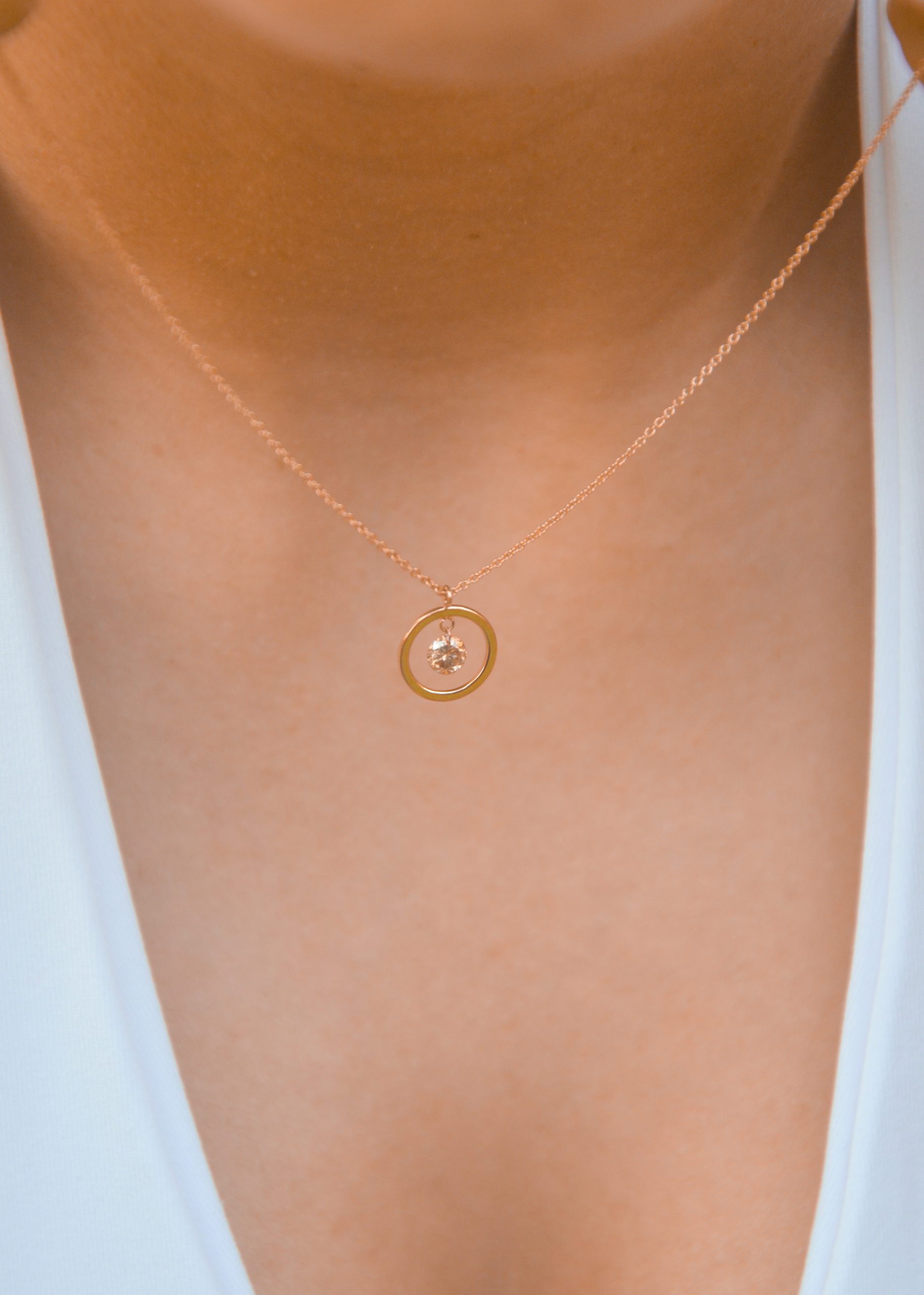 Collar con cadena en oro rosa de 18kt y orla de oro con un diamante conyac perforado de 0,15ct.
