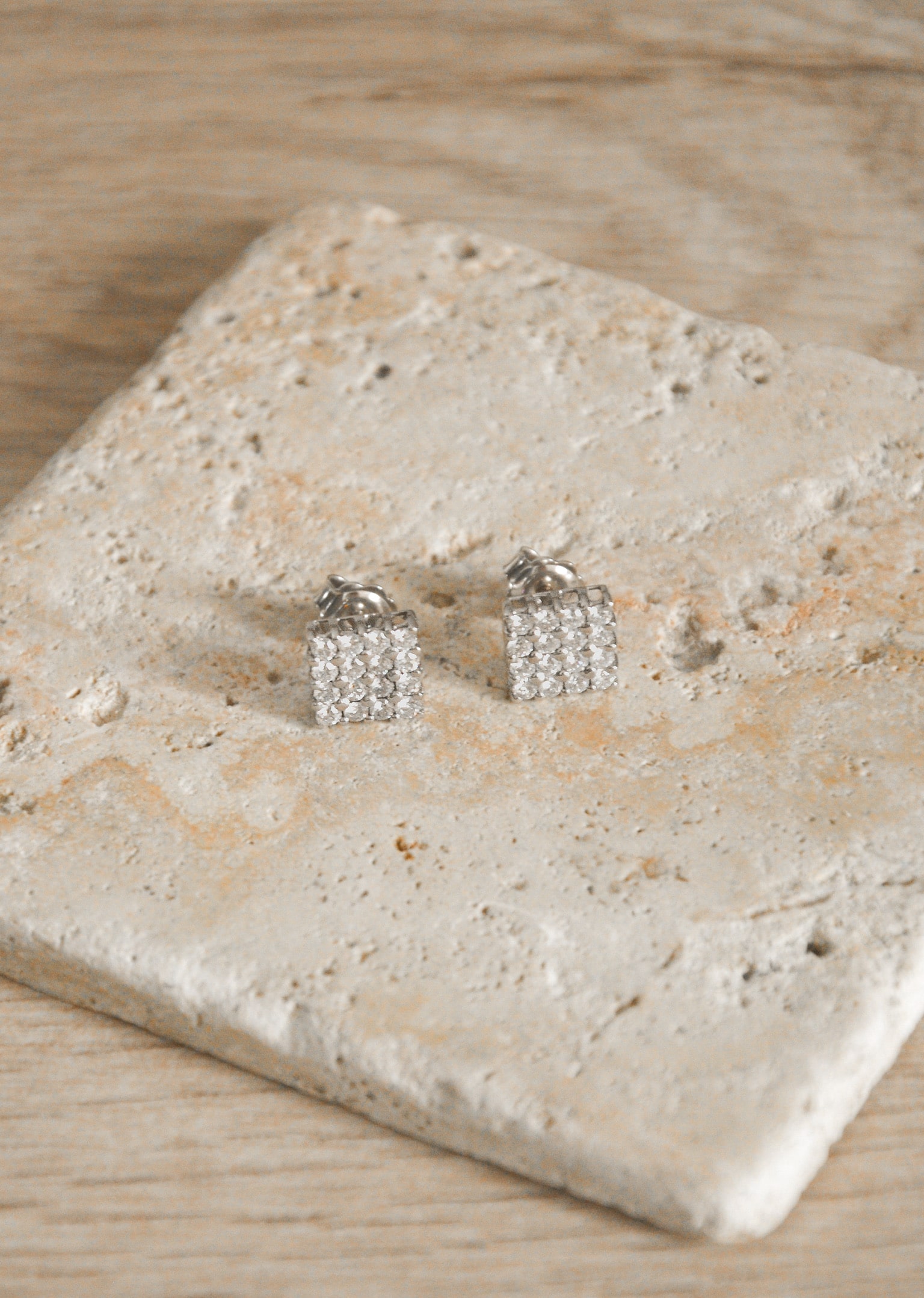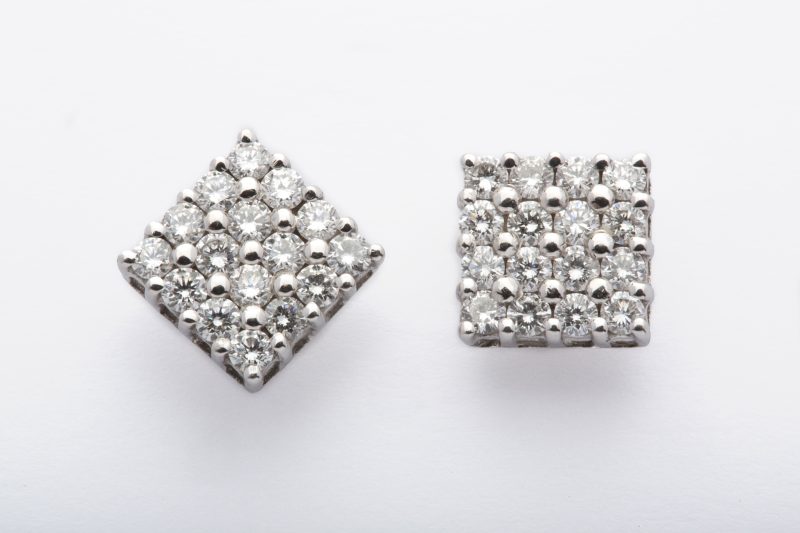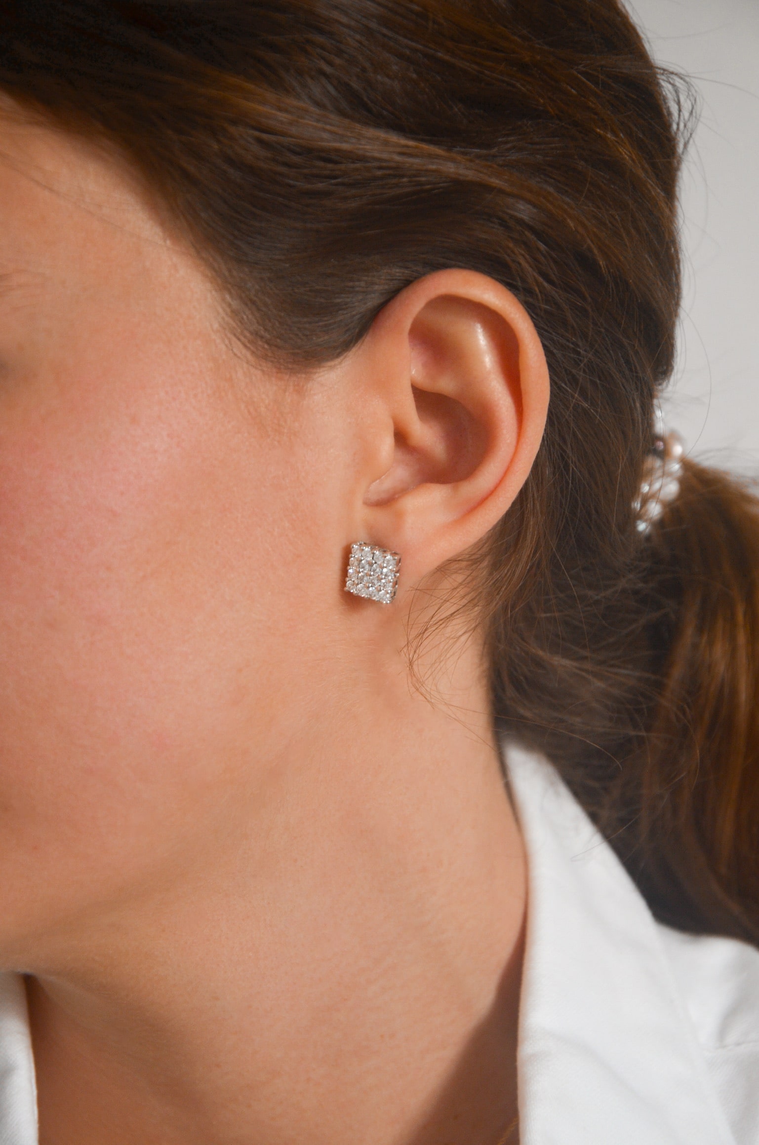 Pendientes dormilonas en oro blanco de 18kt con 32 diamantes de 2,10mm cada uno. 1,28ct.