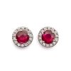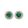 Pendientes en oro blanco de 18kt con orla de 14 brillantes de 1,3mm y esmeralda central de 5mm