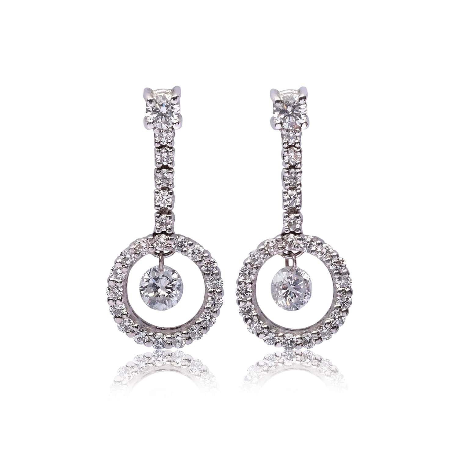 Pendientes en oro blanco de 18kt con 46 diamantes y dos diamantes microperforados de 0.15ct cada uno.