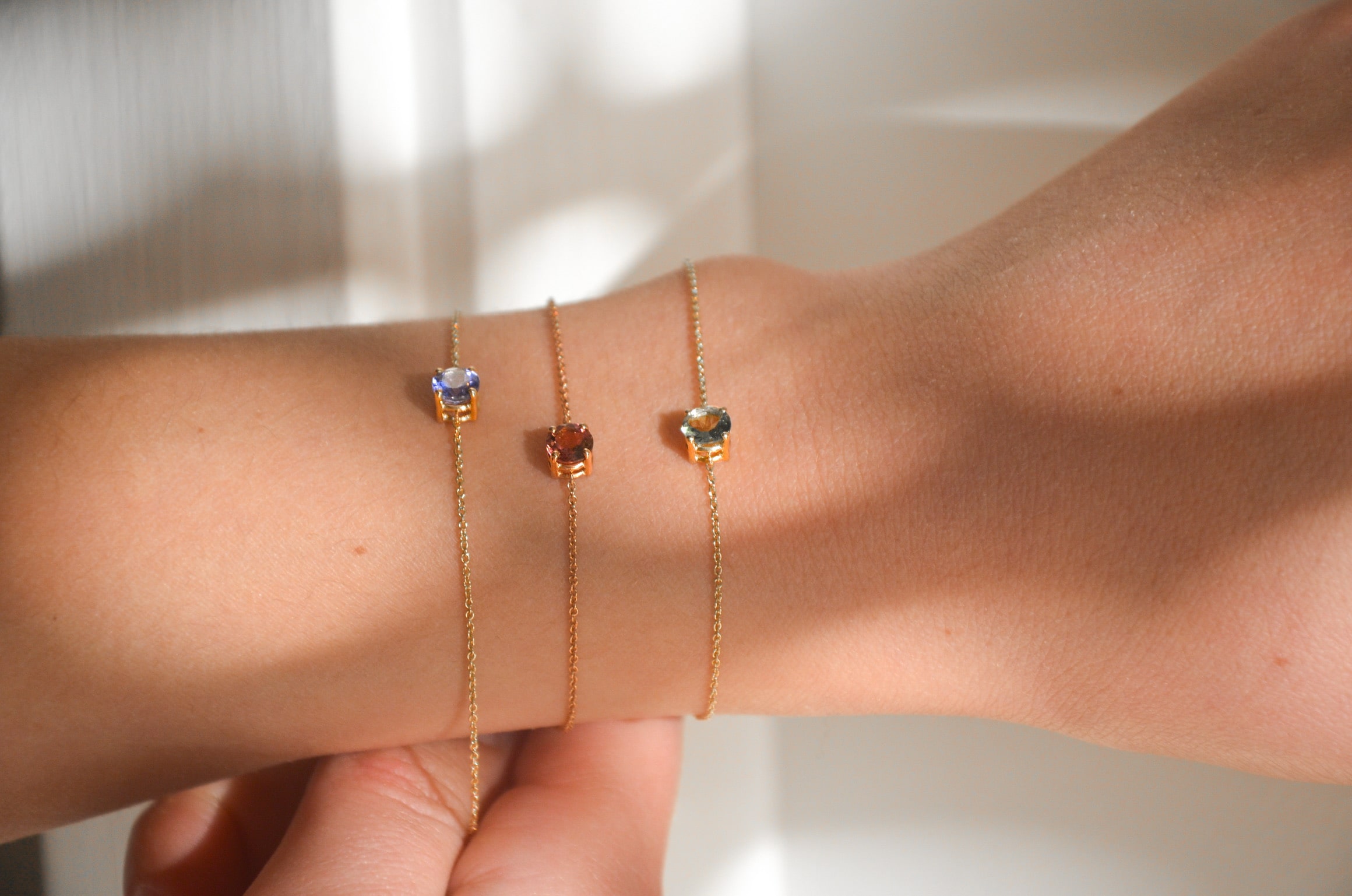Pulsera en oro de 18kt con turmalina verde o rosa de 0,45ct o tanzanita de 0,65ct